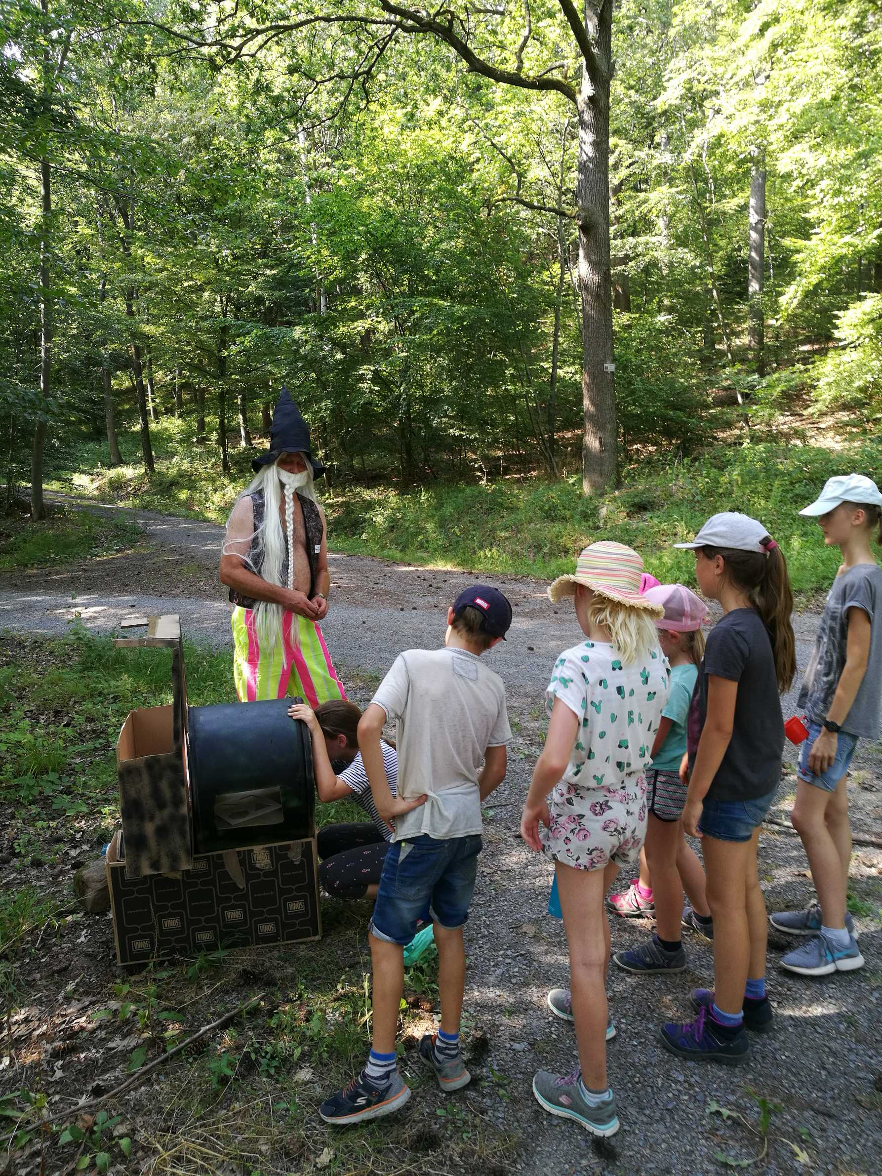 Am darauffolgenden Morgen tauchen die Kinder wieder ein in „ihre Erlebnisse“: sie schießen mit Pfeil und Bogen, sie basteln nach keltischem Vorbild Ketten und Armbänder, sie probieren und erraten exotische Früchte, sie transportieren Gegenstände auf der Slackline, sie lernen die „Räubersprache“, sie versuchen glibberige Fische in einen Eimer zu werfen und zeigen ihre Kraft bei „Hau-den-Lukas“.